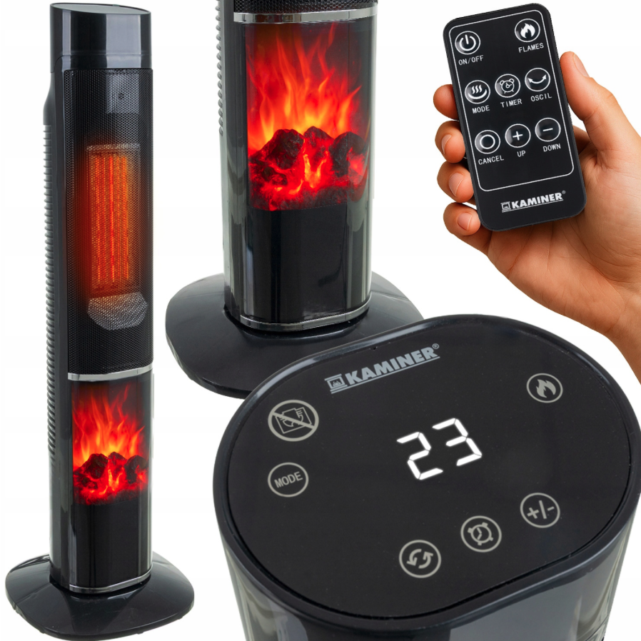 Oszlopos fűtőventilátor KAMINER IGNISSE 2000W kandallóhatással